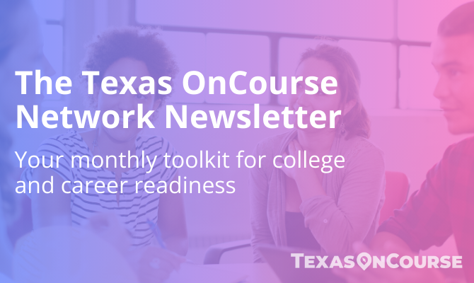 Texas OnCourse provides a variety of practical professional learning resources for educators of all types, including counselors, advisers, teachers, and administrators. They include the Texas OnCourse Academy, our monthly webinar series, our monthly Educator Playbook email, and our blog.